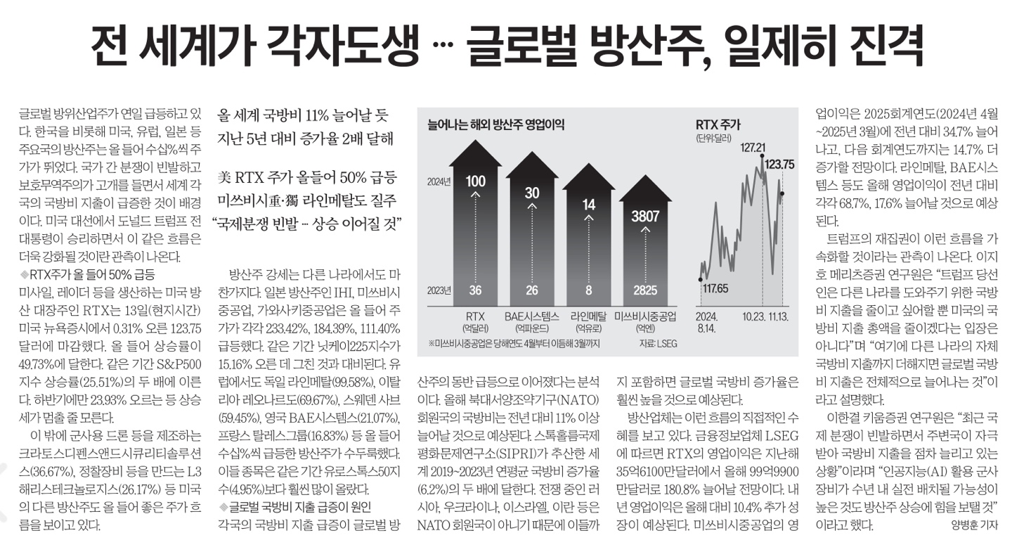 글로벌 방산주 RTX BAE시스템스 라인메탈 미쓰비시중공업